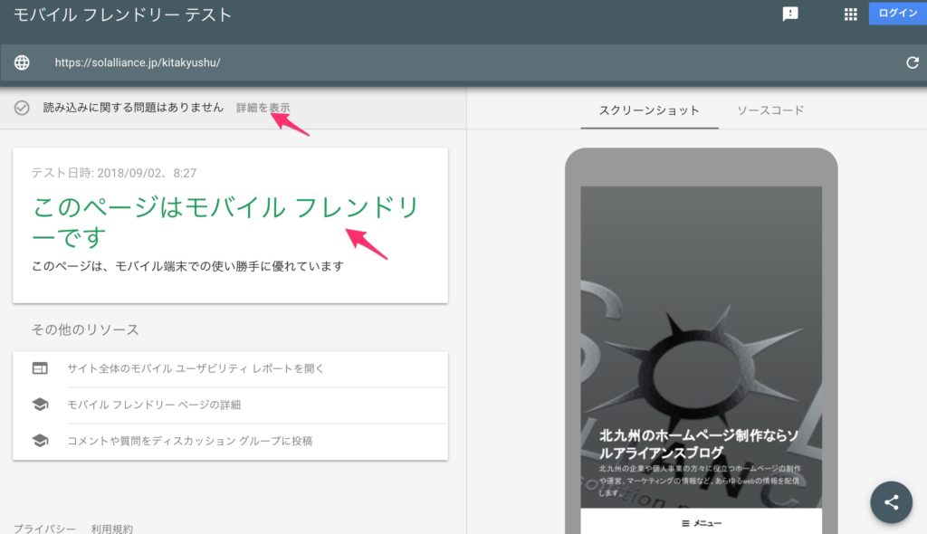 モバイルフレンドリーチェックの実施